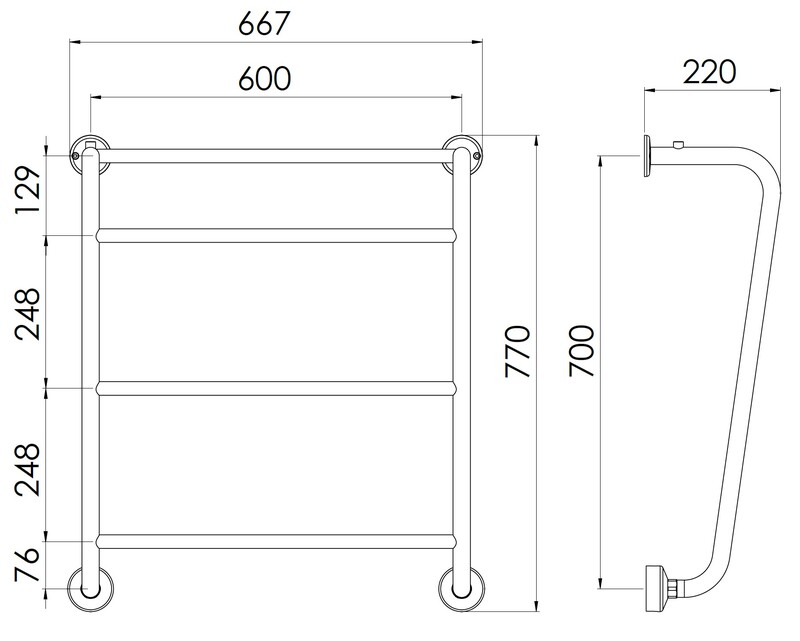 REJ Desgin Retro BT 674 musta, kytkentä alhaalta. Kytkentäväli 600 mm.