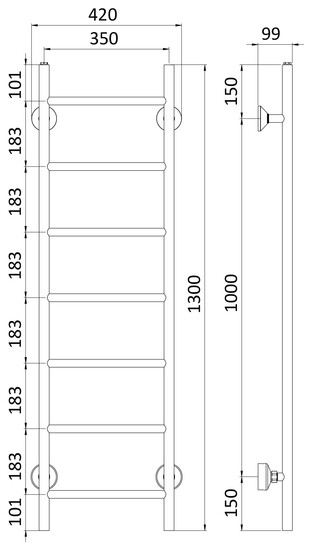 REJ Design Tango BTH 35130 musta pyyhekuivain, kytkentä alhaalta. Kytkentäväli 350 mm.