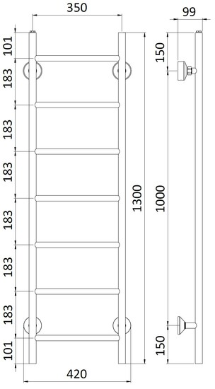 REJ Design Tango BTH 35130 valkoinen pyyhekuivain, kytkentä ylhäältä. Kytkentäväli 350 mm.