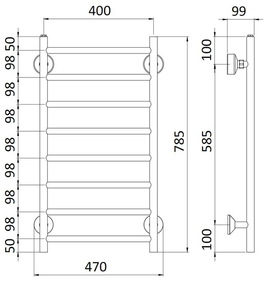 REJ Desgin Tango BTH 40788 musta pyyhekuivain, kytkentä ylhäältä. Kytkentäväli 400 mm.