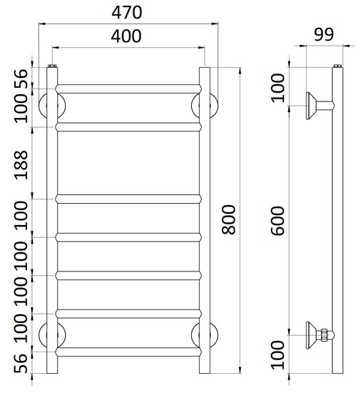 REJ Design Tango BTH 40807 valkoinen pyyhekuivain, kytkentä alhaalta. Kytkentäväli 400 mm.