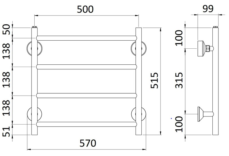 REJ Desgin Tango BTH 50514 musta pyyhekuivain, kytkentä ylhäältä. Kytkentäväli 500 mm.