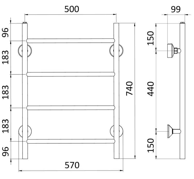 REJ Design Tango BTH 50744 valkoinen pyyhekuivain, kytkentä ylhäältä. Kytkentäväli 500 mm.