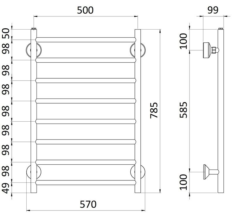 REJ Desgin Tango BTH 50788 musta pyyhekuivain, kytkentä ylhäältä. Kytkentäväli 500 mm.