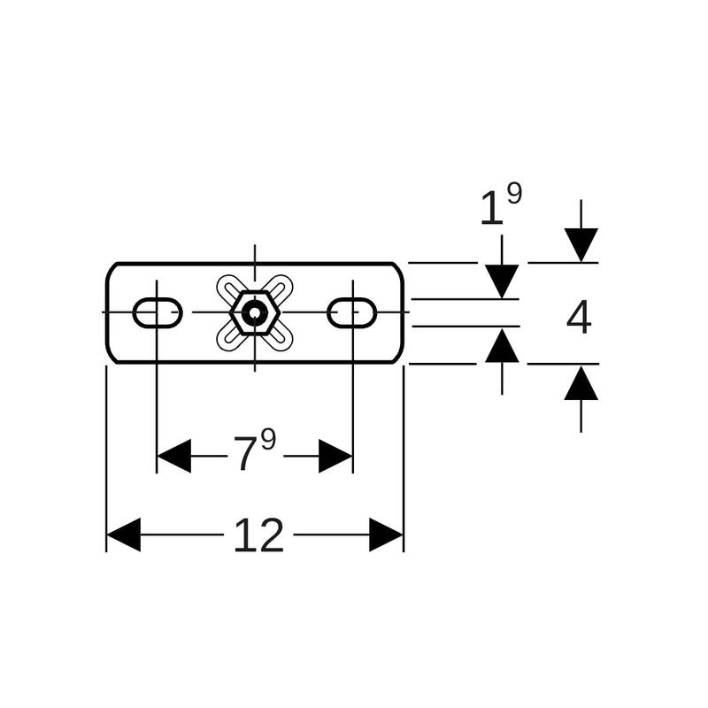 Geberit-runkolevy, kulmikas, kaksireikäinen, kierremuhvilla M10.