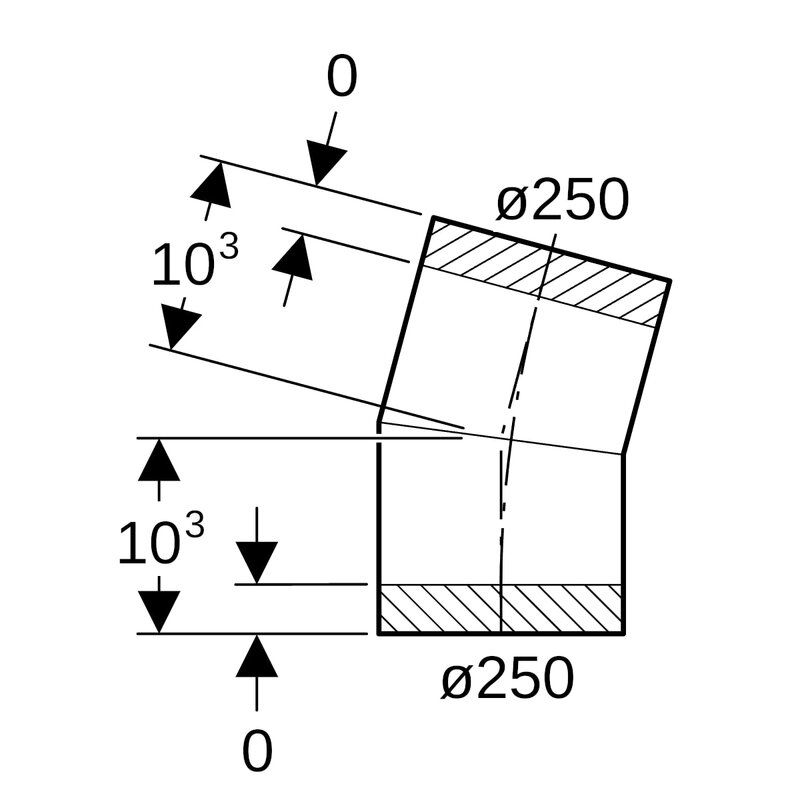 Geberit PE -segmenttikulmayhde: 15°, d = 250 mm.