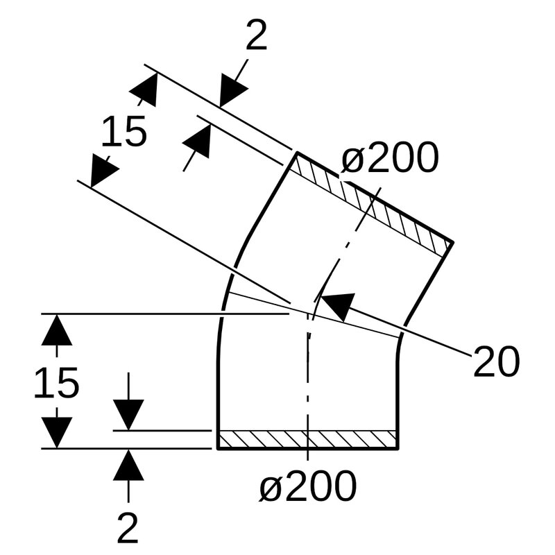 Geberit PE -segmenttikulmayhde: 30°, d = 200 mm.
