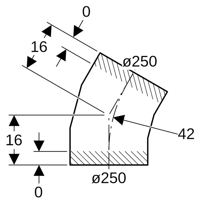 Geberit PE -segmenttikulmayhde: 30°, d = 250 mm.