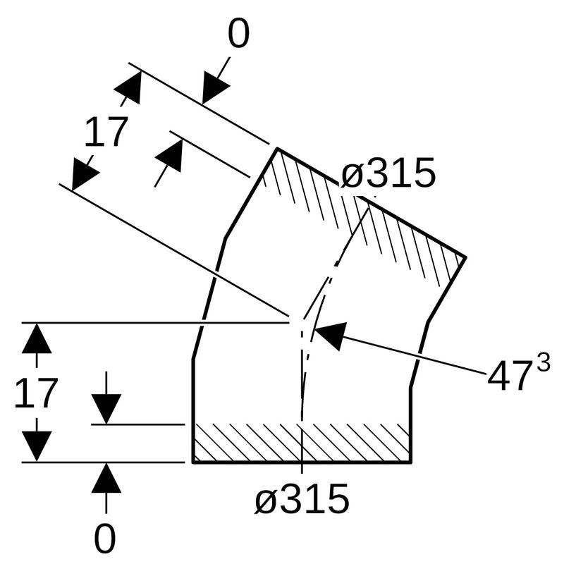 Geberit PE -segmenttikulmayhde: 30°, d = 315 mm.