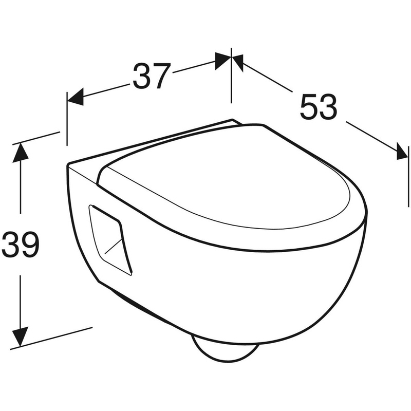 Geberit Renova -seinä-WC, osittain suljettu muoto, Rimfree, sisältää WC-istuinkannen: T = 53 cm. Valkoinen.