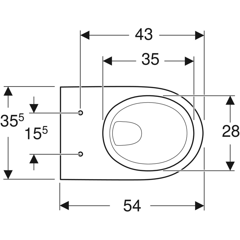 Geberit Renova -seinä-WC, Rimfree: T = 54 cm. Valkoinen/ KeraTect.