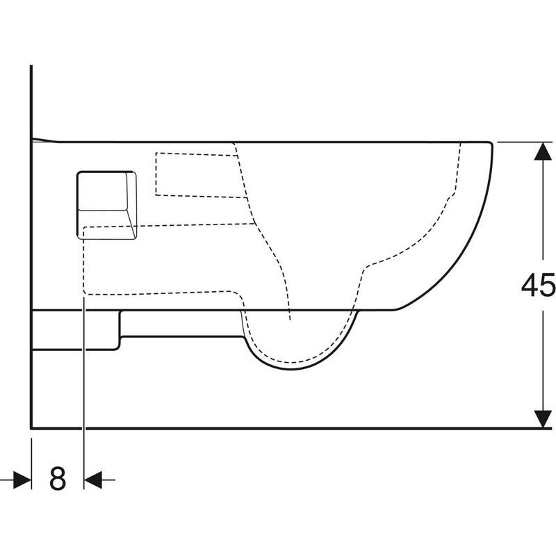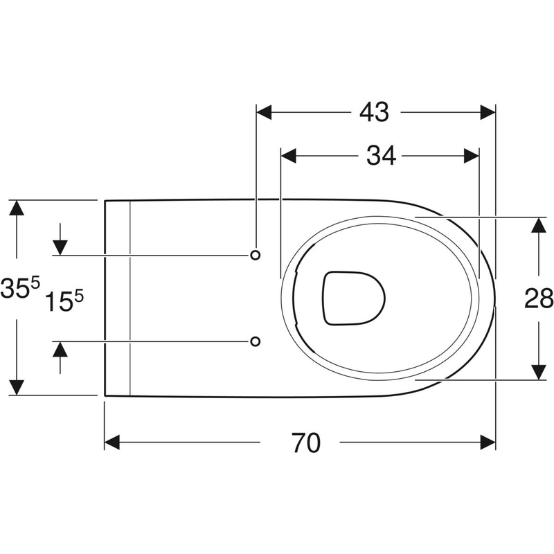 Geberit Renova Comfort -seinä-WC, pidennetty ulottuma, osaksi suljettu muoto, Rimfree: T = 70 cm. Valkoinen.