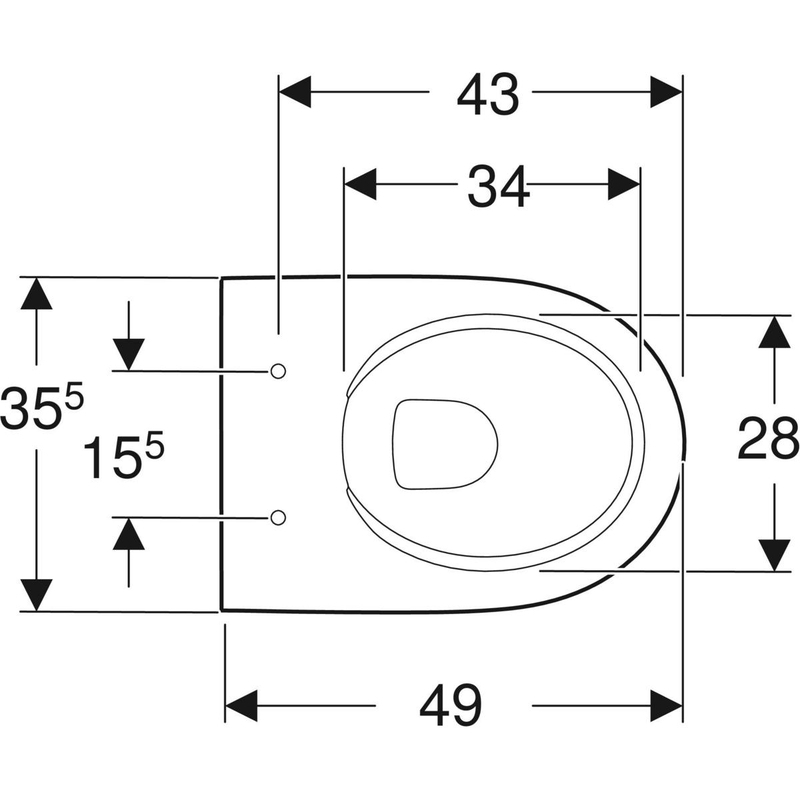 Geberit Renova Compact -seinä-WC, Compact, suljettu muoto, Rimfree: T = 49 cm. Valkoinen.