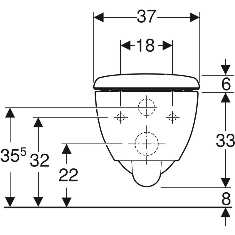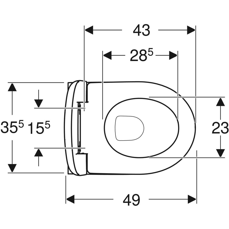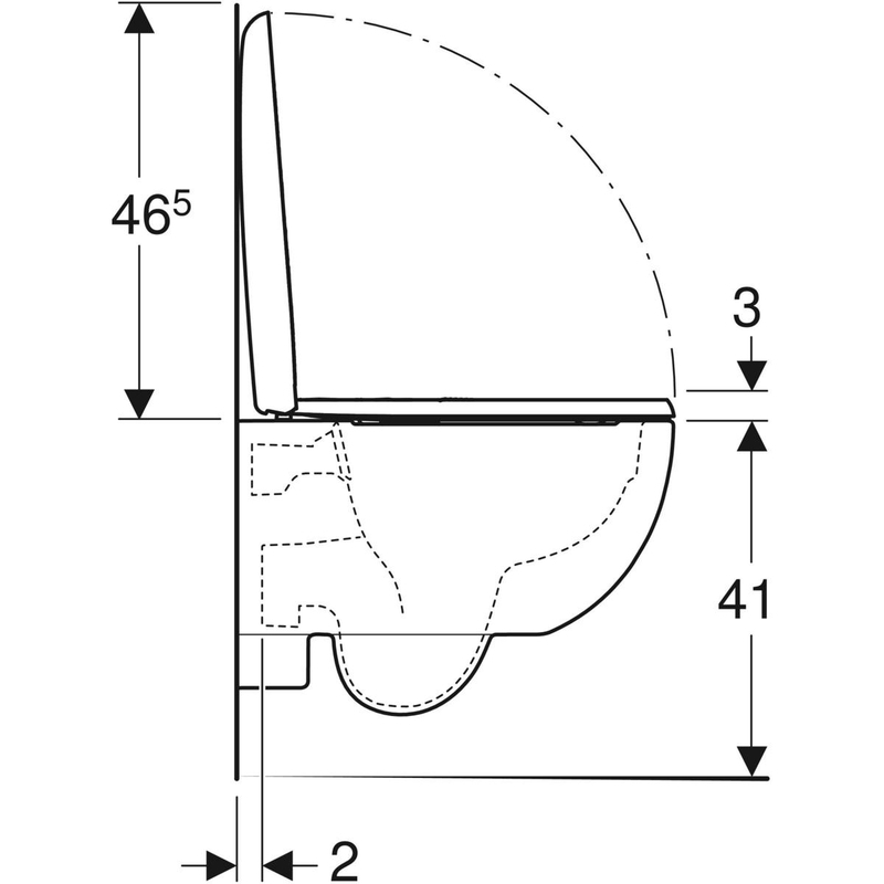 Geberit Renova Compact -seinä-WC, Compact, suljettu muoto, Rimfree, sisältää WC-istuinkannen: T = 49 cm. Valkoinen.