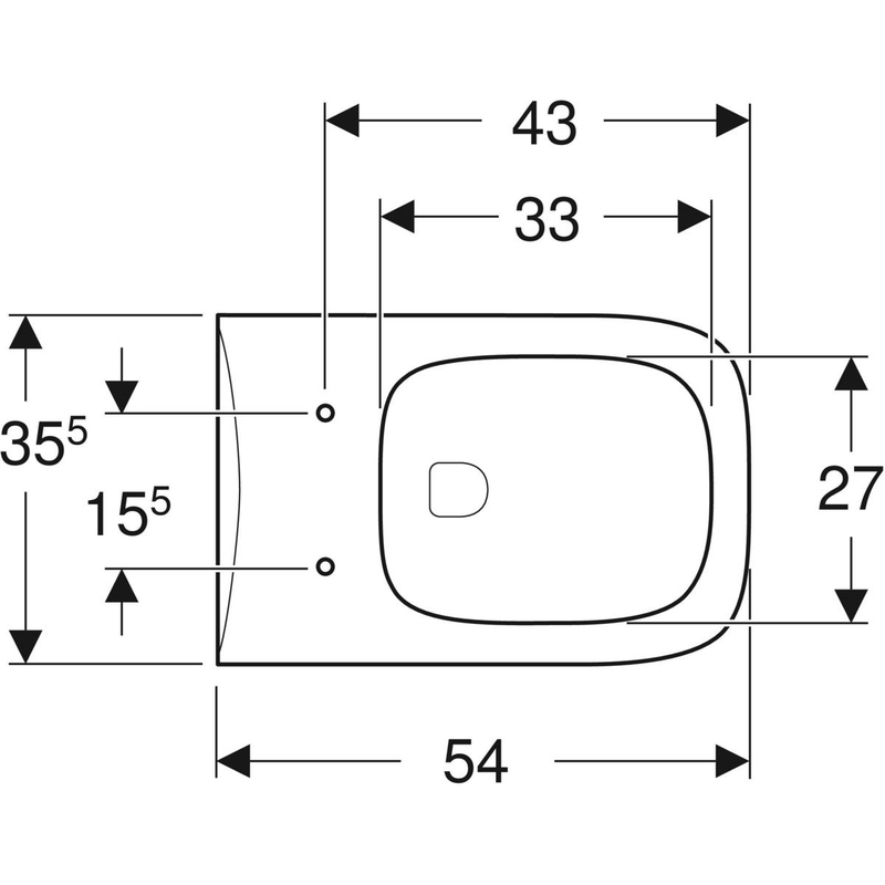 Geberit Renova Plan -seinä-WC, Rimfree: T = 54 cm. Valkoinen.