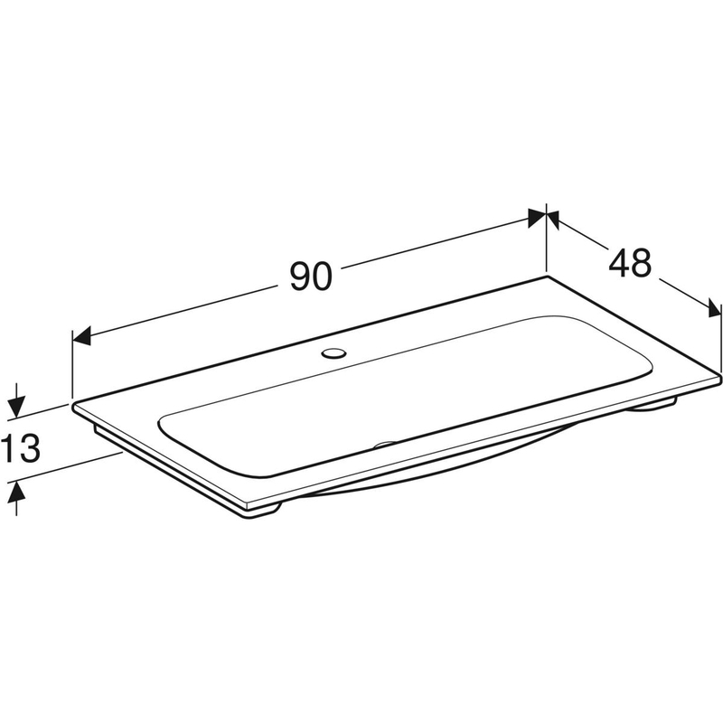 Geberit iCon -tasoallas: B = 90 cm, T = 48 cm, hanareikä = keskellä, ylivuoto = ei ole, valkoinen.