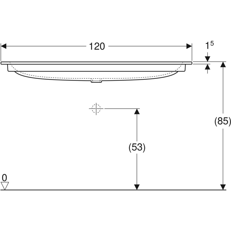 Geberit iCon -tasoallas: B = 120 cm, T = 48 cm, hanareikä = ei ole, ylivuoto = ei ole, valkoinen/ KeraTect.