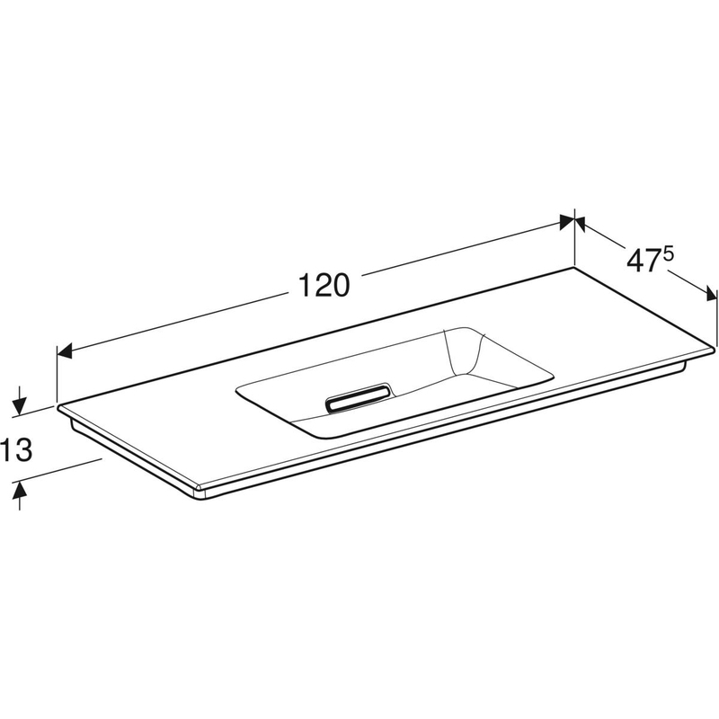 Geberit ONE -tasoallas, vaakapoisto: B = 120 cm, T = 48 cm, hanareikä = ei ole, ylivuoto = ei ole, valkoinen/ KeraTect, kiiltävä valkoinen.