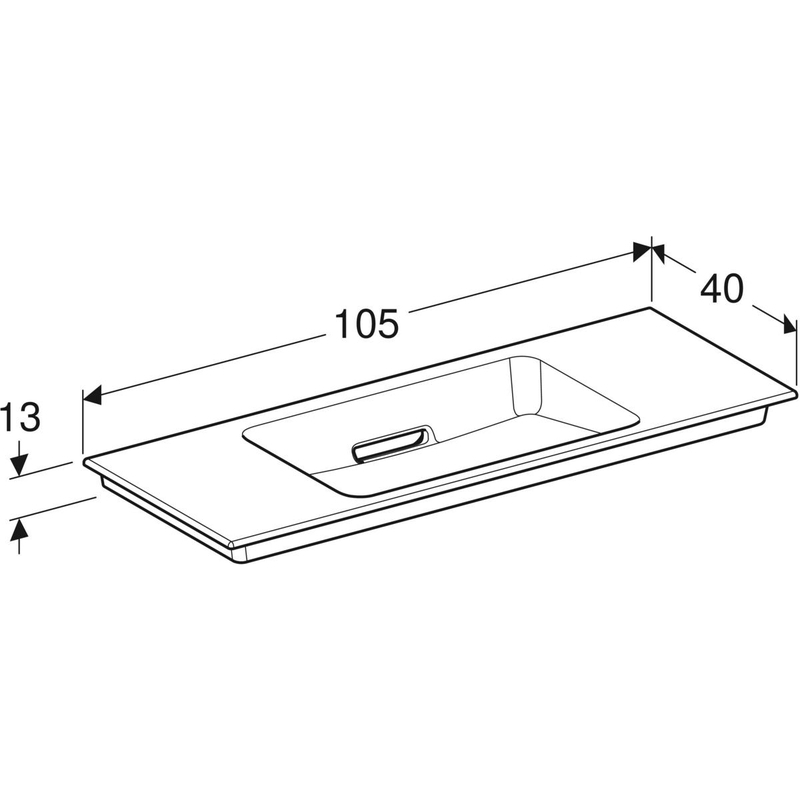 Geberit ONE -tasoallas, vaakaviemäri, Compact: B = 105 cm, T = 40 cm, hanareikä = ei ole, ylivuoto = Piilotettu, valkoinen/KeraTect, kiiltävä valkoinen.