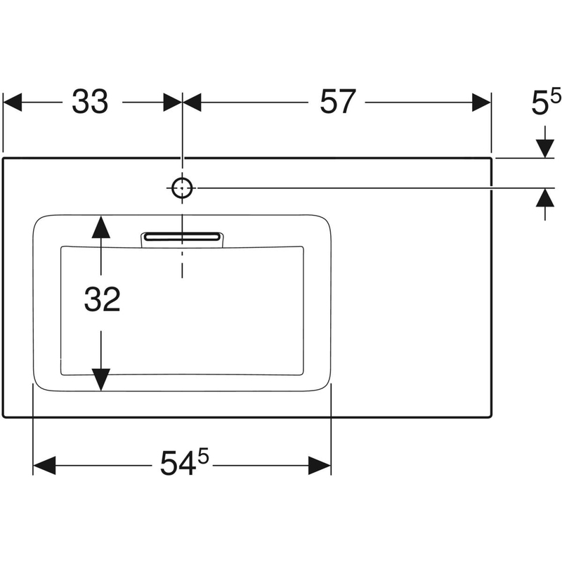 Geberit ONE -tasoallas, vaakapoisto, laskutaso oikealla: B = 90 cm, T = 48 cm, hanareikä = vasen, ylivuoto = ei ole, valkoinen/ KeraTect, kiiltävä valkoinen.