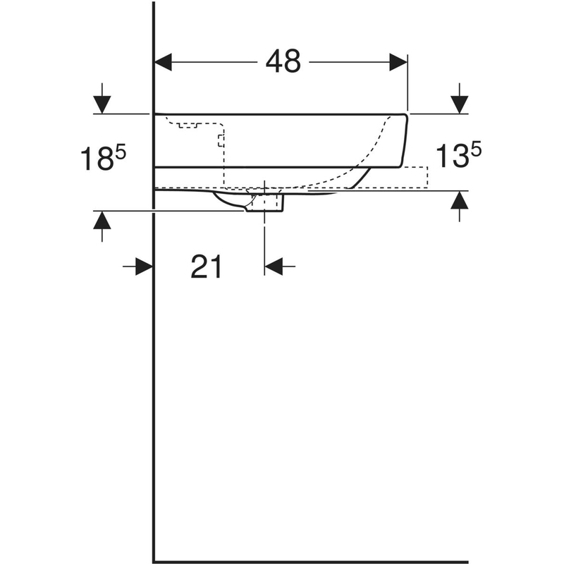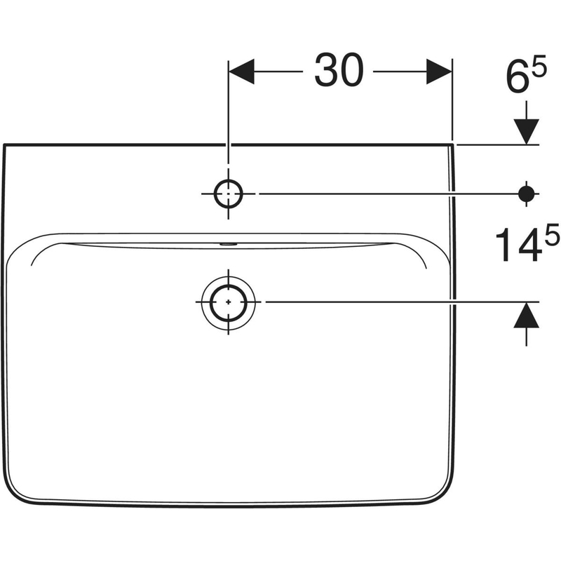 Geberit Renova Plan -tason päälle asennettava pesuallas: B = 60 cm, T = 48 cm, hanareikä = keskellä, ylivuoto = näkyvä, valkoinen / KeraTect.