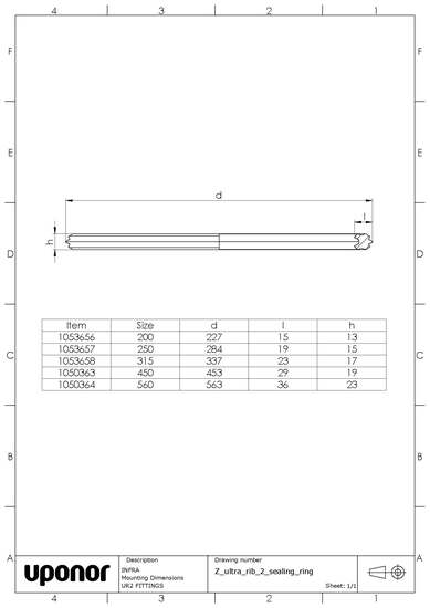 Tiivisterengas maaviemäriputkelle Uponor Ultra Rib 2 DU 450 luonnonkumi