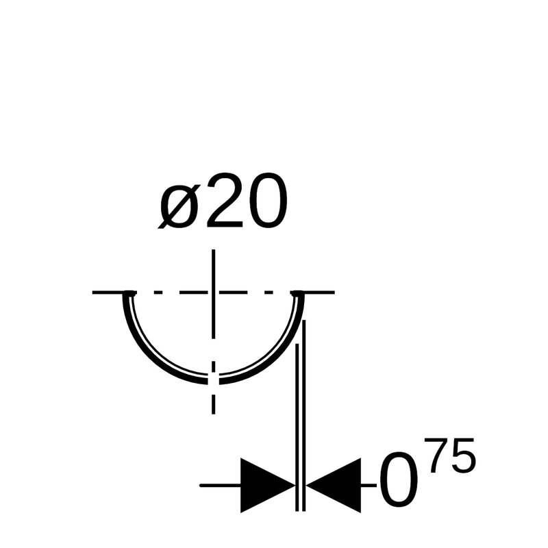 Sinkitty ja maalattu Geberit-tukikouru, di = 20 mm.