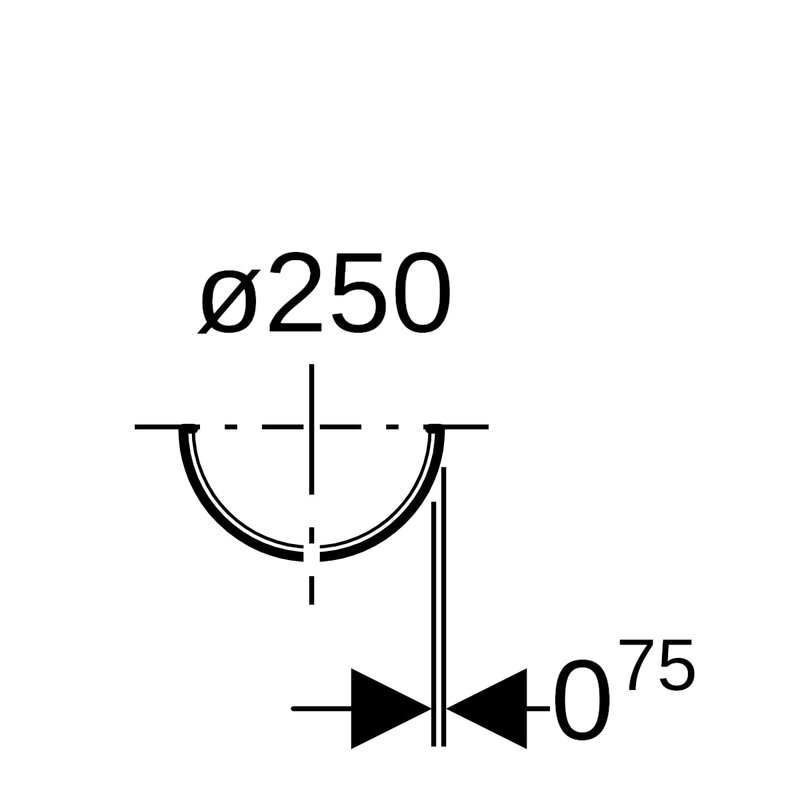 Sinkitty ja maalattu Geberit-tukikouru, di = 250 mm.