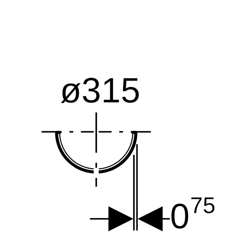 Sinkitty ja maalattu Geberit-tukikouru, di = 315 mm.