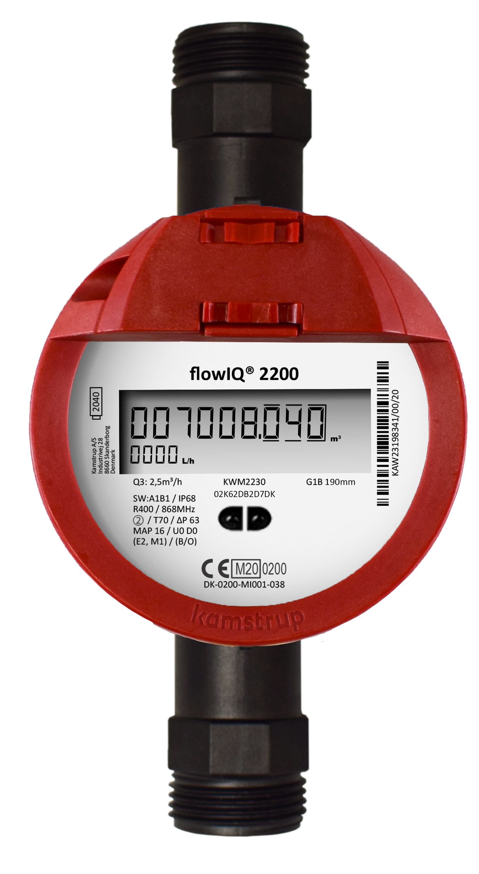Ultraääni kylmävesimittari komposiittia Kamstrup flowIQ® 2200 Q3 1,6 m³/h, G3/4B (R1/2") x 110 mm (DN 15), PN16, R160