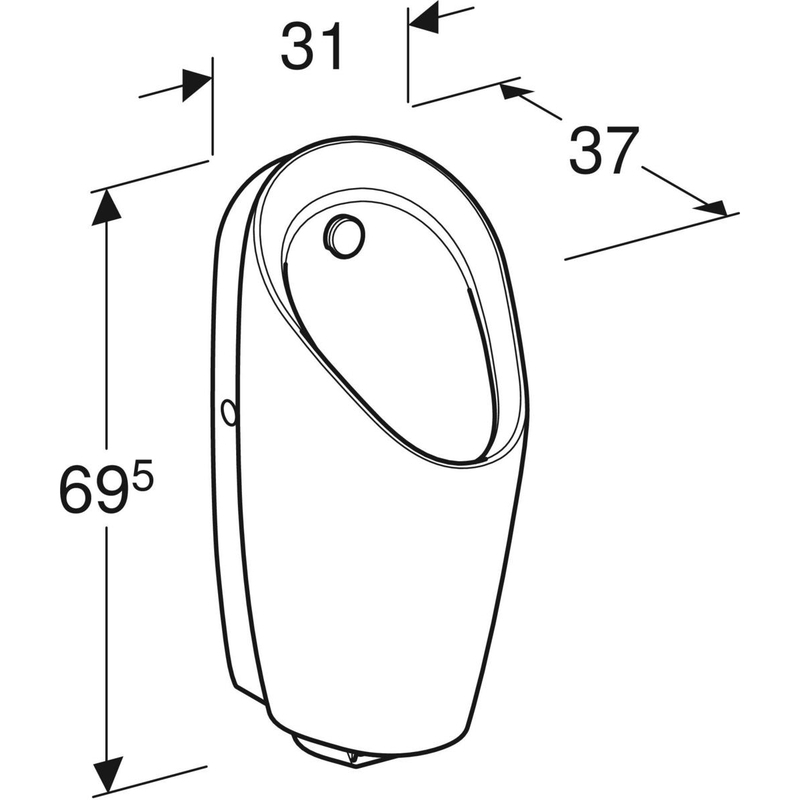 Geberit PReda -urinaali, jossa sisäänrakennettu ohjaus, generaattorikäyttöinen: T = 37 cm, vesiliitäntä = takana, valkoinen.