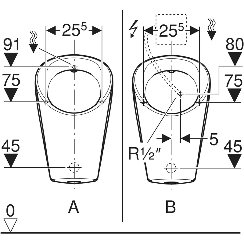 Urinaali, seinä Geberit Renova M vesi takaa, taka-/alapoisto, KeraTect