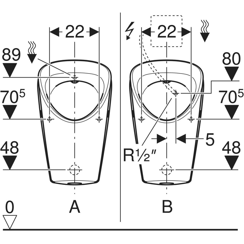 Urinaali, seinä Geberit Renova S vesi takaa, taka-/alapoisto