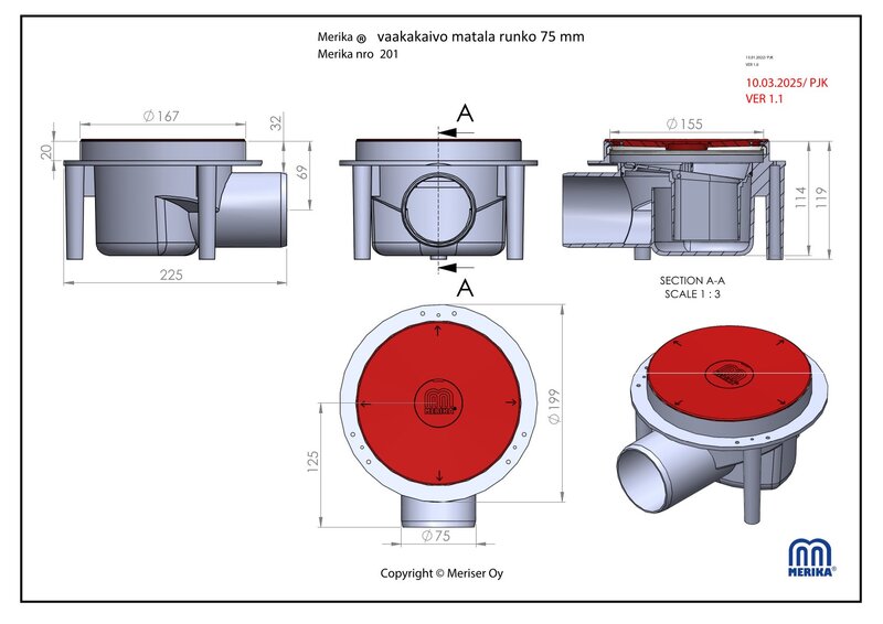 Vaakakaivo muovia Merika 75, H=119 mm matala