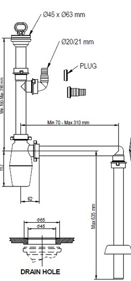 Vesilukko 1-osainen PP Alterna Lira 32 mm lattiaputkella valkoinen