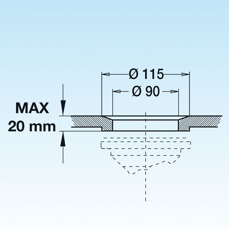Vesilukon pohjaventtiili PP Alterna Lira UK 1 1/2"x90 mm reiälle HST-sihti