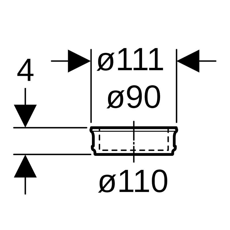 Geberit PE -viemärimuhvi huulitiivisteellä, seinä-WC:lle: d = 110 mm, d1 = 90 mm.