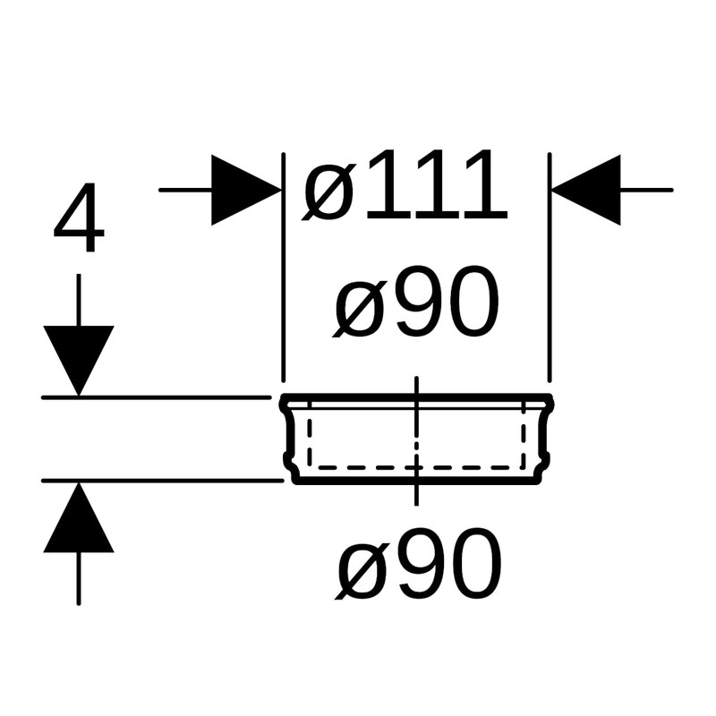 Geberit PE -viemärimuhvi huulitiivisteellä, seinä-WC:lle: d = 90 mm, d1 = 90 mm.