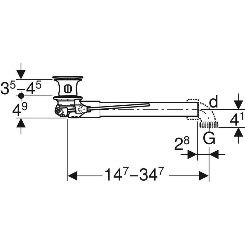 Geberit-viemäröintiyhde, tilaa säästävä malli, Slim Design, painikekäyttöisellä pohjaventtiilin kannella, vipukäyttöinen: G = 1 1/4".
