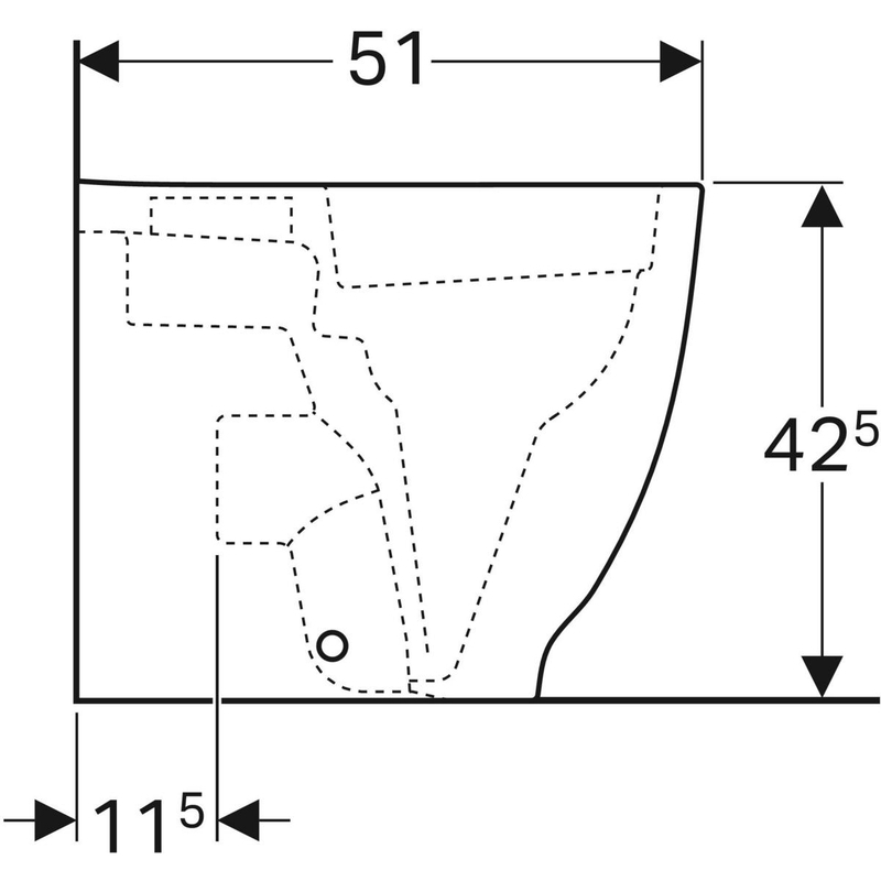 Geberit Acanto -lattia-WC, korotettu, Back-to-Wall, suljettu muoto, Rimfree: T = 51 cm. Valkoinen.